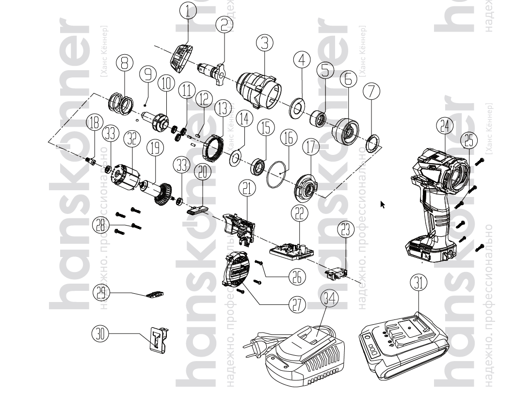 Аккумуляторный гайковерт Hanskonner HCD18350S Unibattery