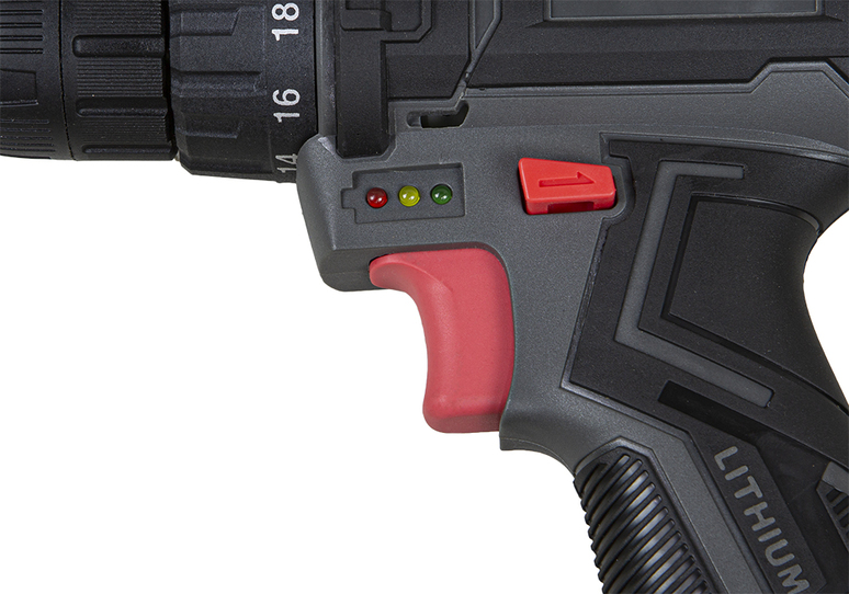 Прочный двухскоростной планетарный редуктор позволяет потребителю эффективно выполнять работы по сверлению в древесине, пластмассе и металле, Оптимальная регулировка силы крутящего момента, в 18 ступень + ступень сверления, позволяет устанавливать любой крепеж без его повреждения и вдавливания в материал.