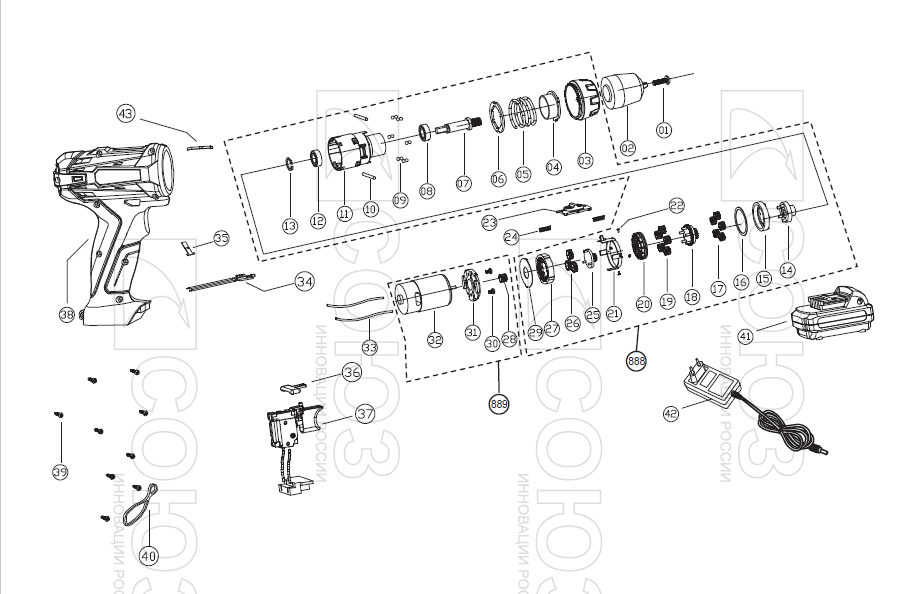 Прочный двухскоростной планетарный редуктор позволяет потребителю эффективно выполнять работы по сверлению в древесине, пластмассе и металле, Оптимальная регулировка силы крутящего момента, в 18 ступень + ступень сверления, позволяет устанавливать любой крепеж без его повреждения и вдавливания в материал.