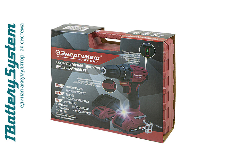 Аккумуляторный шуруповерт Энергомаш ГАРАНТ ДШ1-18Л 1BatterySystem