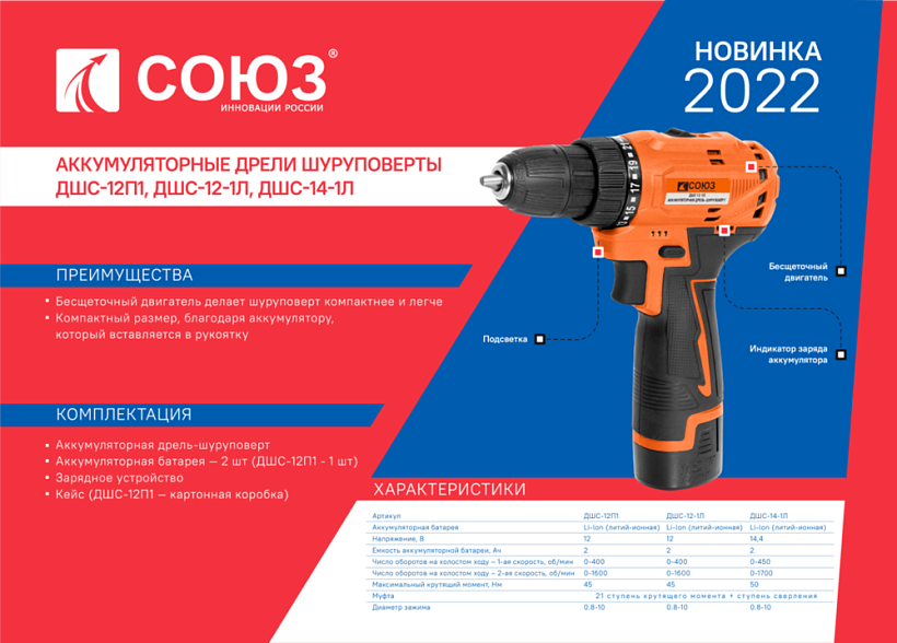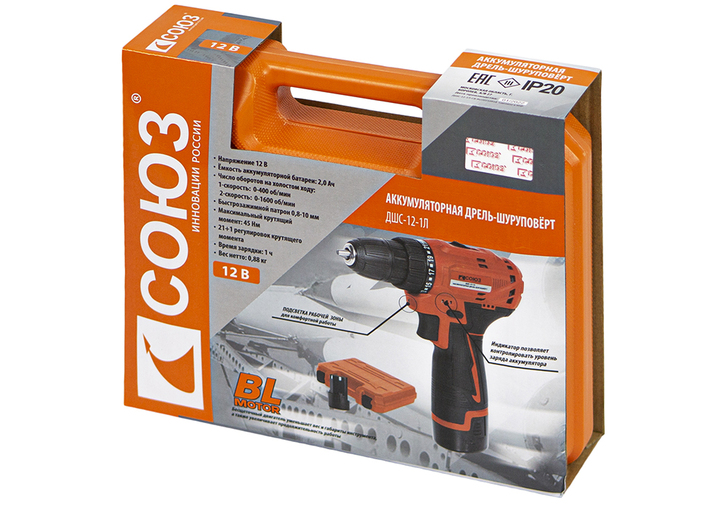 Аккумуляторный шуруповерт СОЮЗ ДШС-12-1Л