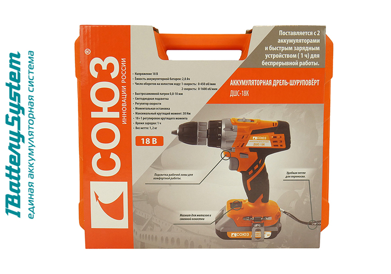 Аккумуляторный шуруповерт СОЮЗ ДШС-18К 1BatterySystem