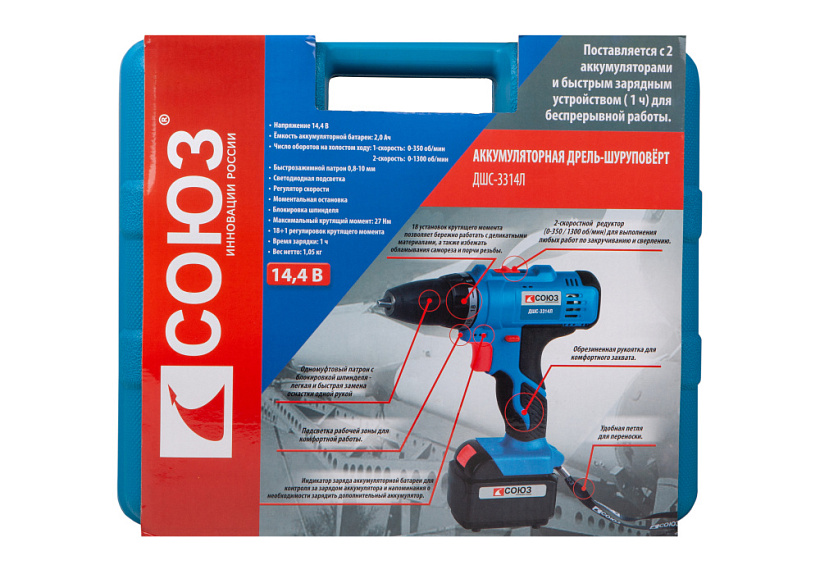 Аккумуляторный шуруповерт СОЮЗ ДШС-3314Л