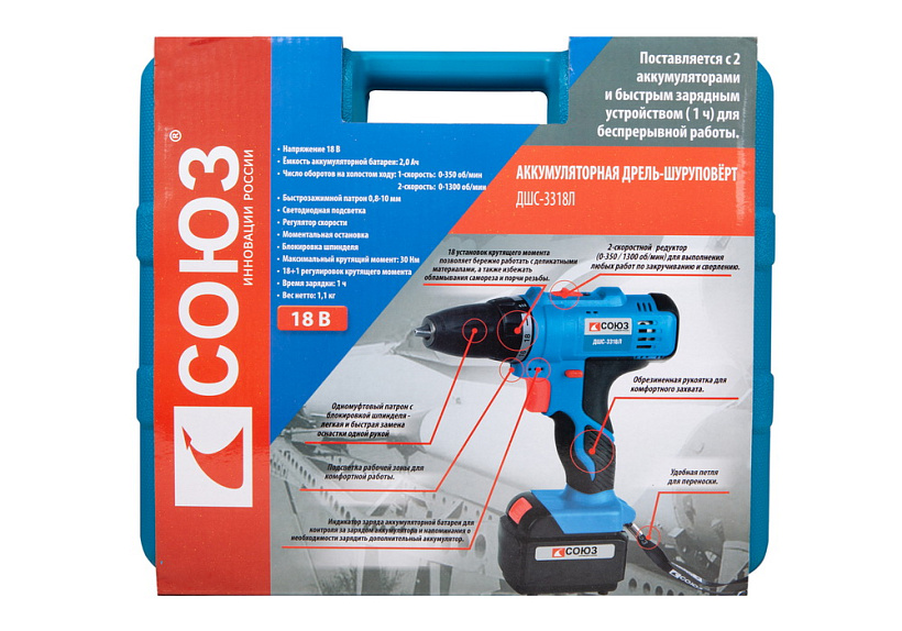 Аккумуляторный шуруповерт СОЮЗ ДШС-3318Л
