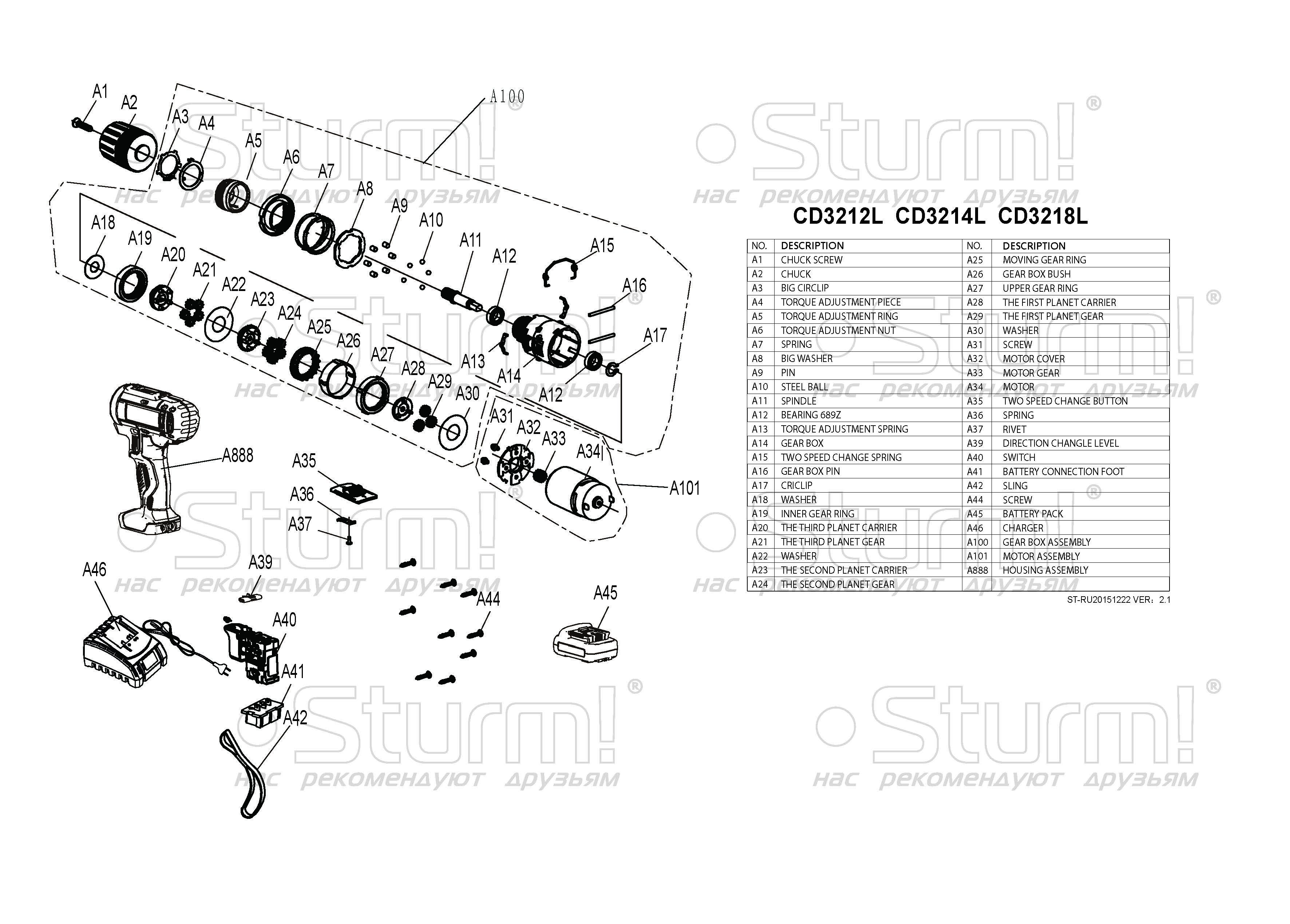 Аккумуляторный шуруповерт Sturm! CD3218L 2019