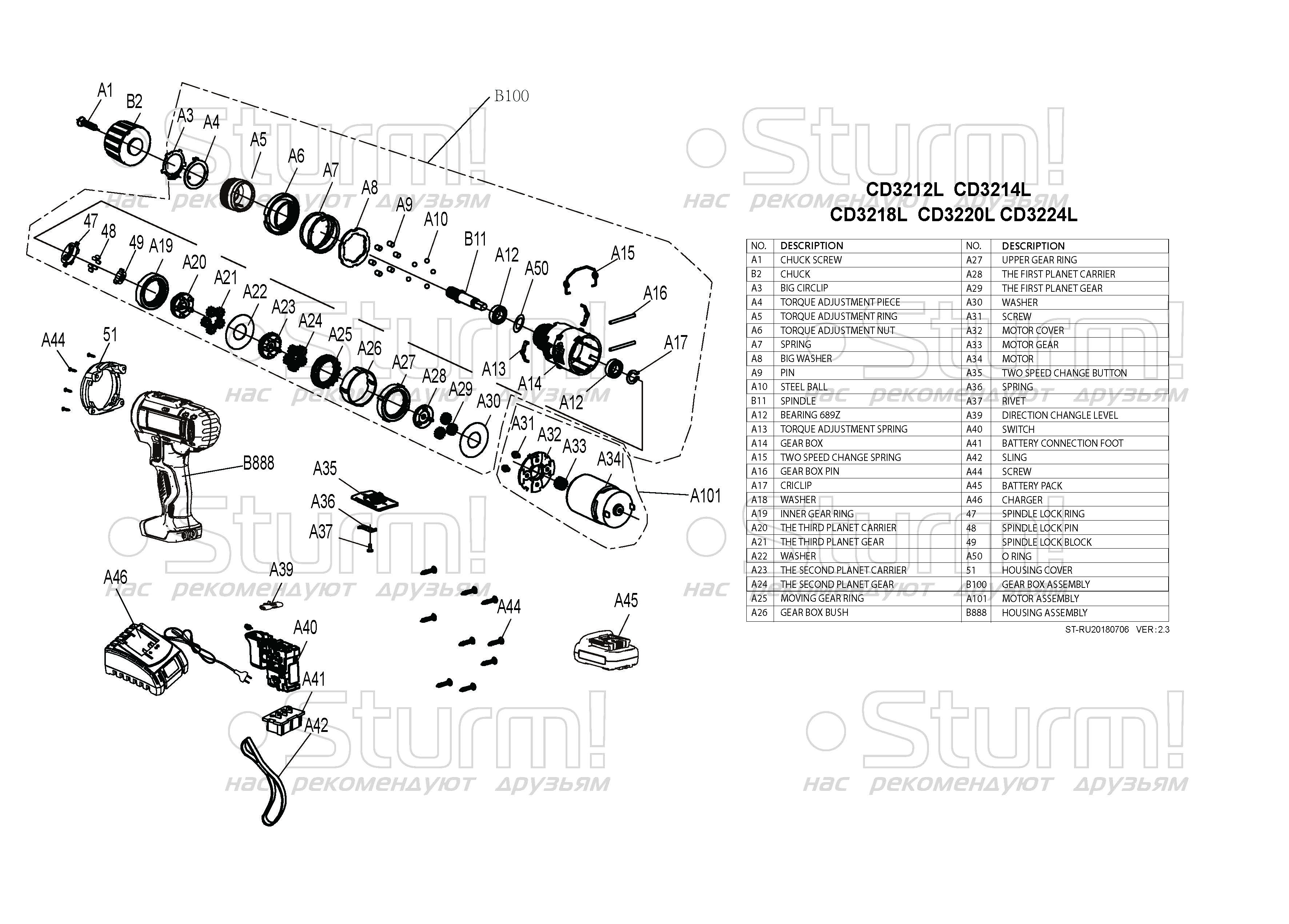 Аккумуляторный шуруповерт Sturm! CD3220L