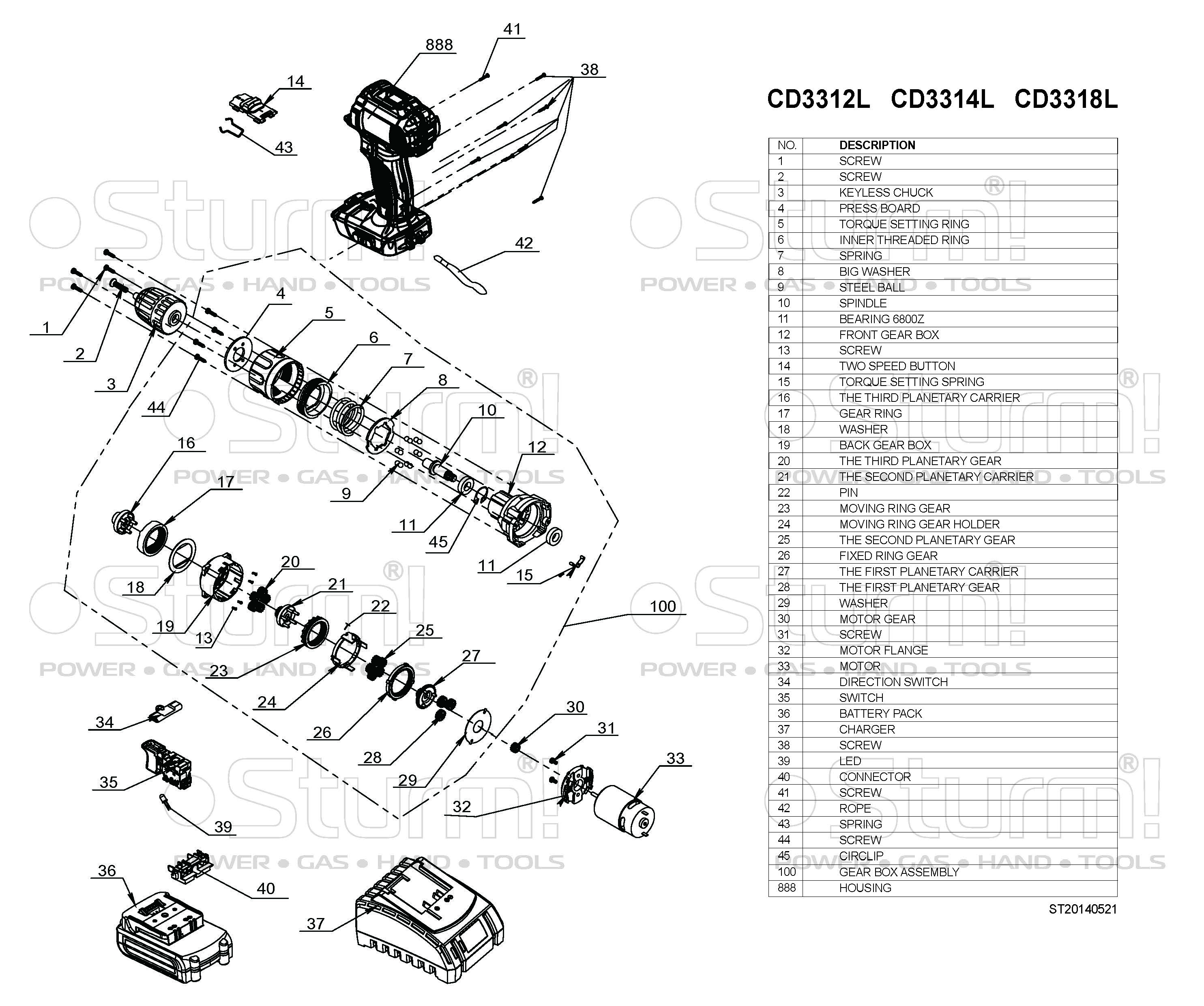 Аккумуляторный шуруповерт Sturm! CD3318L