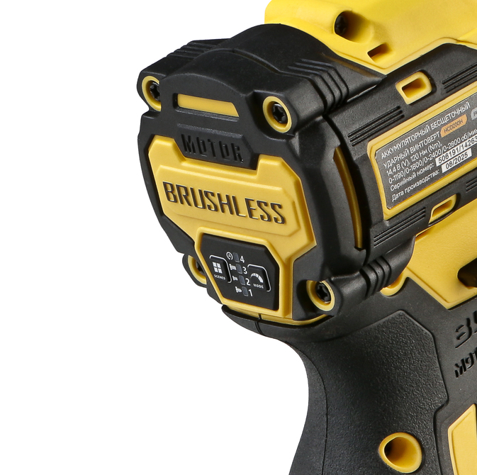 Винтоверт оснащен бесщеточным двигателем, характеризующимся на 30% лучшей производительностью в сравнении с коллекторными аналогами. Кроме того, бесщеточный двигатель отлично справляется с кратковременными перегрузками и не склонен к перегреву.