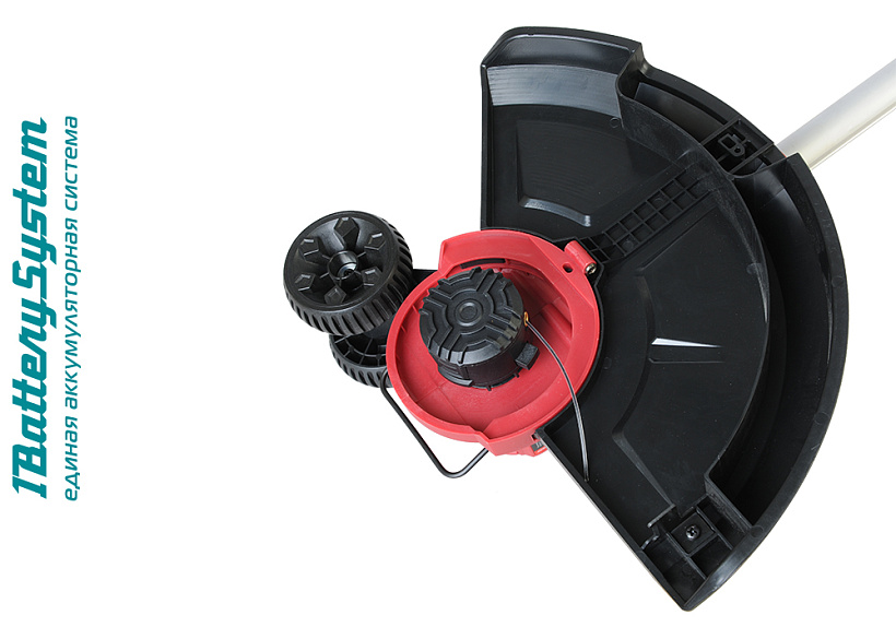 Питание триммера осуществляется от аккумулятора 1BatterySystem* напряжением 18 В. Данная модель является частью системы 1BatterySystem и совместима со всей линейкой аккумуляторного инструмента. Для Вашей выгоды модель поставляется без аккумулятора и зарядного устройства.