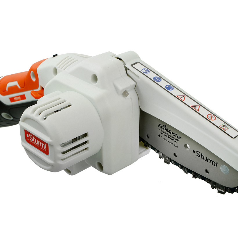 Аккумуляторная пила CSC1204 Sturm! Предназначена для бытового использования. Данная модель обладает повышенной мобильностью, так как может использоваться вне зависимости от источников питания. Идеально подходит для работы в саду при уходе за растущими деревьями, распила и обрезания веток деревьев, а также справится с простыми столярными работами.