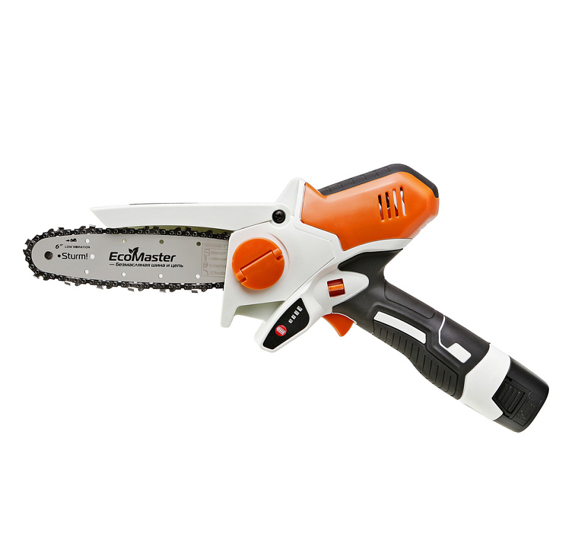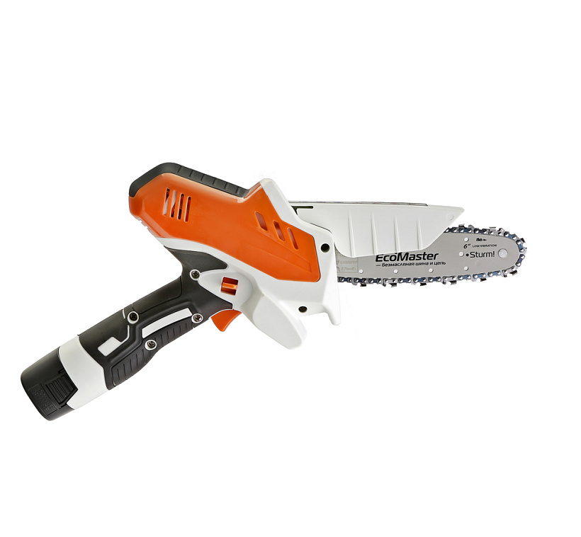 Аккумуляторная цепная пила Sturm! CSC18061 прекрасно справится с обрезкой веток деревьев и простыми столярными работами.