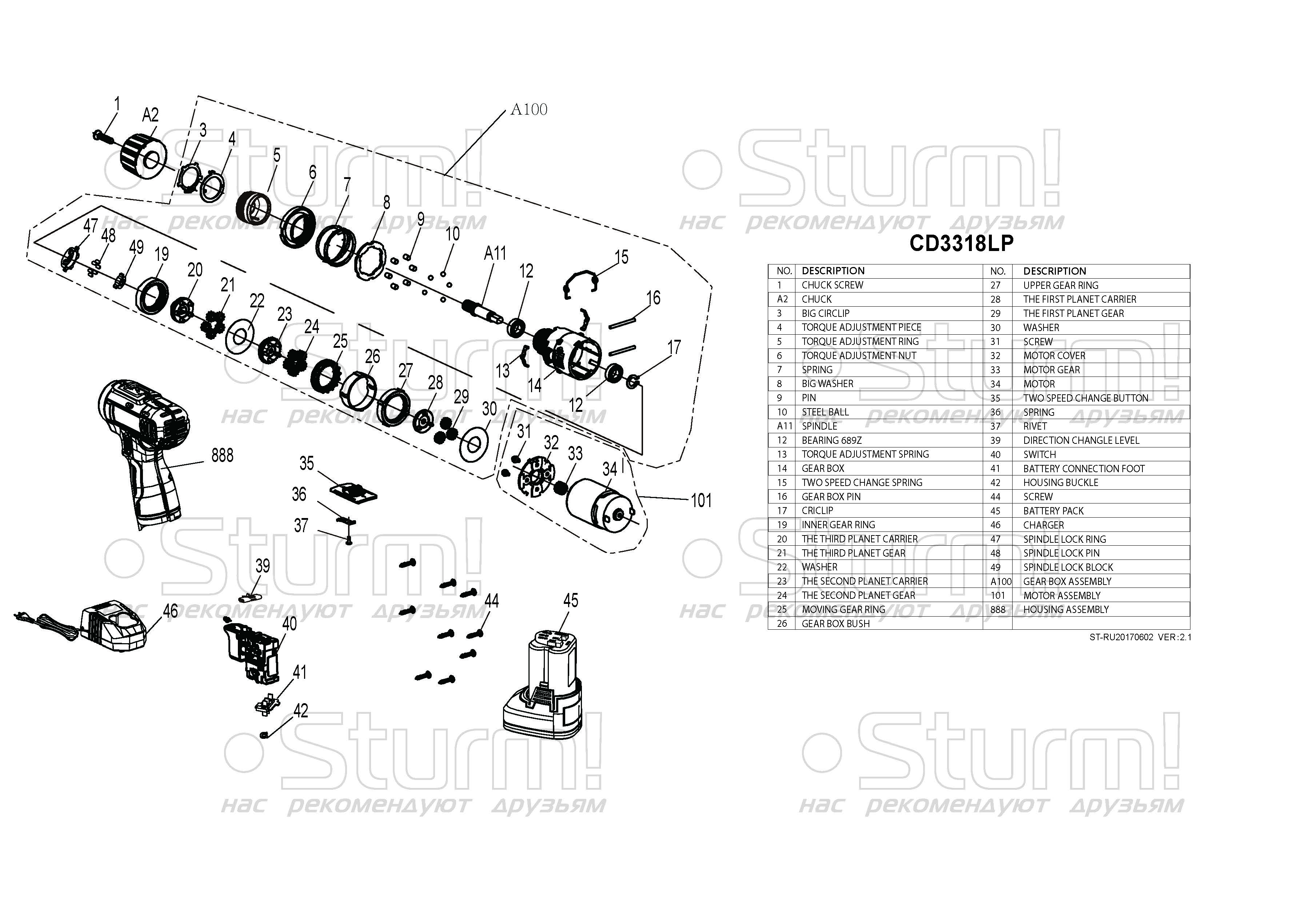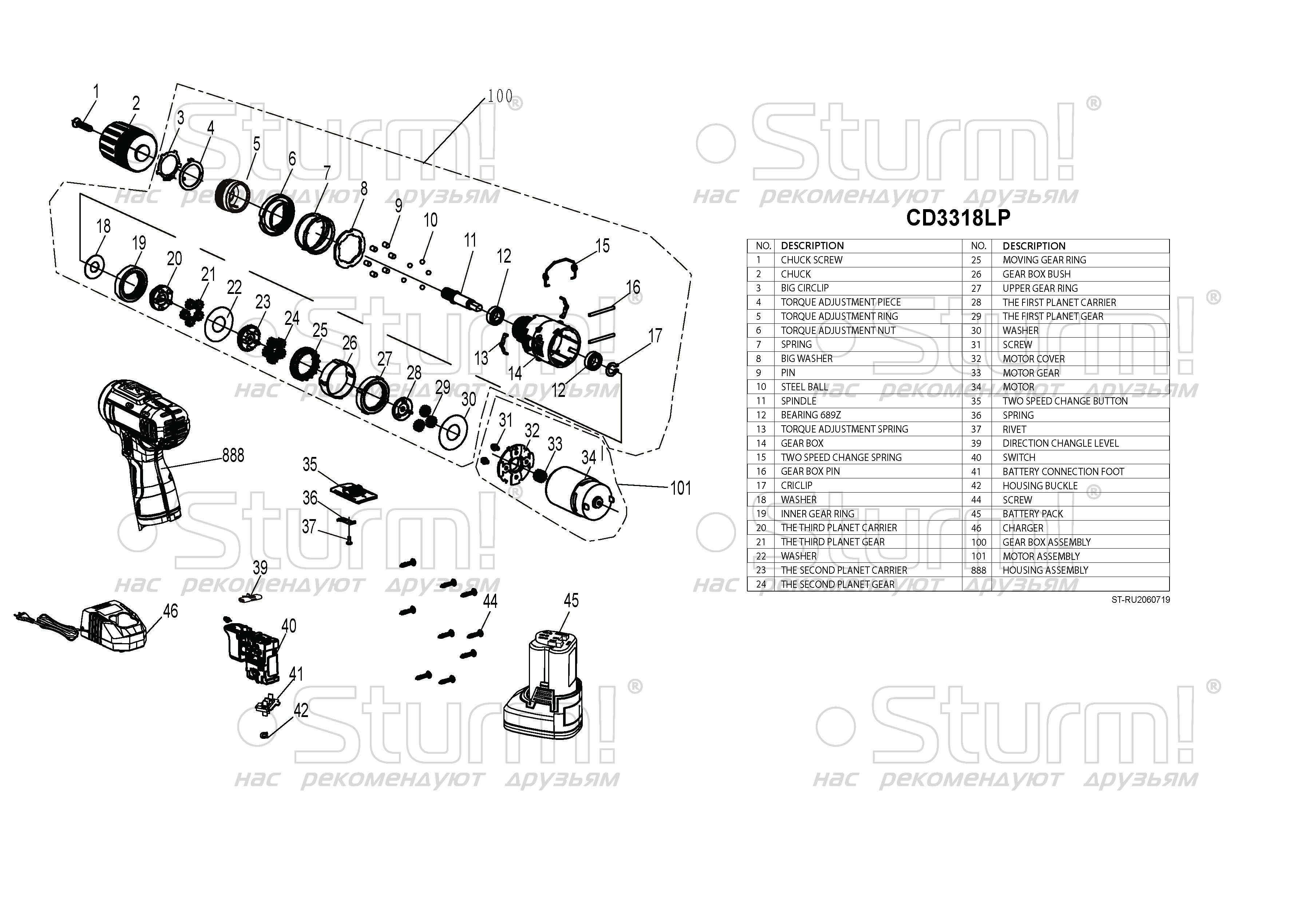 Аккумуляторный шуруповерт Sturm! CD3318LP