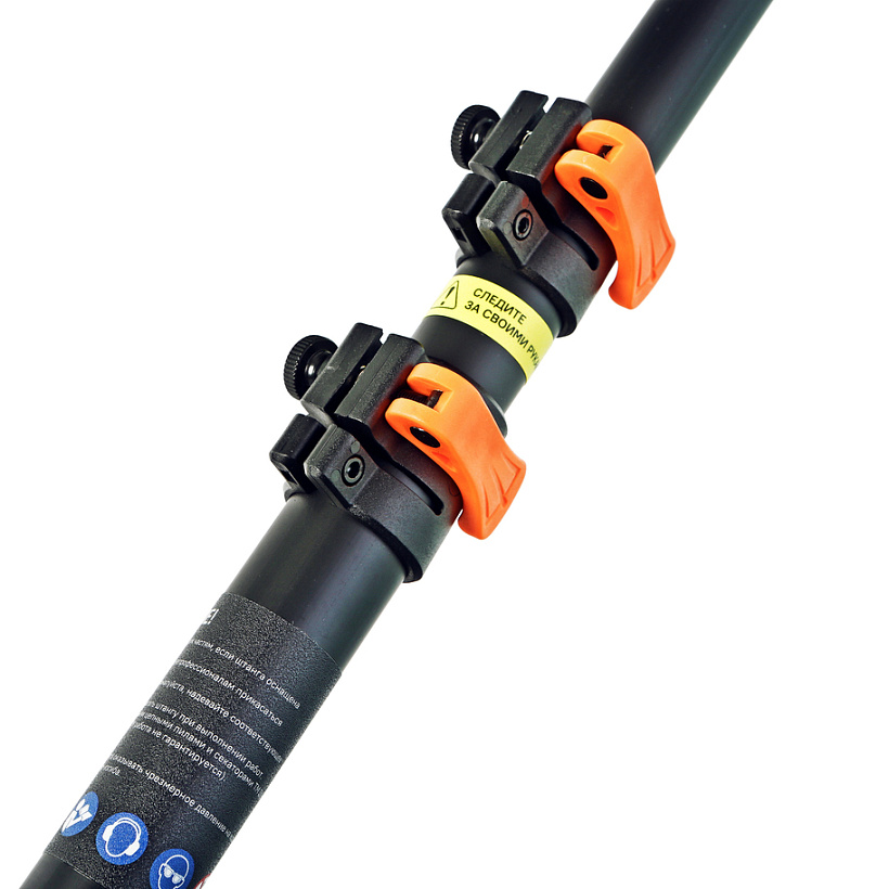 Телескопическая штанга для аккумуляторных пил и секаторов позволяет увеличить высоту, на которой можно пилить, не используя стремянку. Механизм телескопической штанги с надёжным фиксатором позволяет легко устанавливать нужную длину для максимального комфорта во время работы. Рабочая длина штанги — от 130 до 250 см. Предусмотрен зажимной механизм, который обеспечивает надёжную фиксацию пилы со штангой. Также предусмотрена обрезиненная ручка для удобства оператора: по ней не скользят пальцы, поэтому уровень напряжения при работе гораздо ниже.