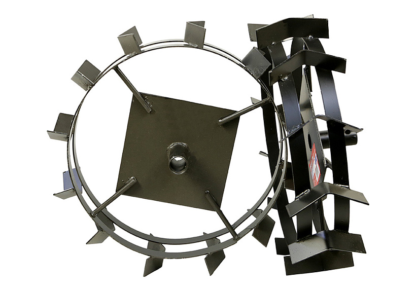 Грунтозацепы для мотоблока СОЮЗ БМ1С-26-500-130 используются в качестве замены резиновых колес и обеспечивают сцепление с грунтом при работе мотоблока. Колеса выполнены в виде нескольких полос металла со вваренными в середину листами металла. На такие колеса почва не налипает, выдавливаясь в пустоты между лентами. В результате сцепление с грунтом будет выше. Диаметр ступицы 30 мм, диаметр грунтозацепа 500 мм, ширина 130, количество ободов 2, высота зацепа 30мм.