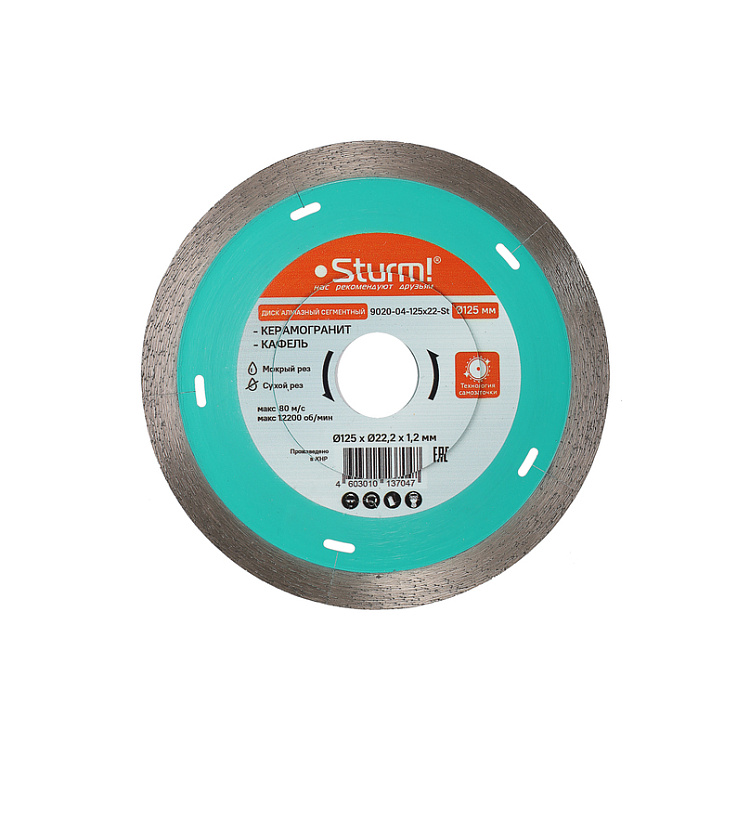 Алмазный диск 125x22,23 ТОНКИЙ, сегментный, сухой рез, Sturm!