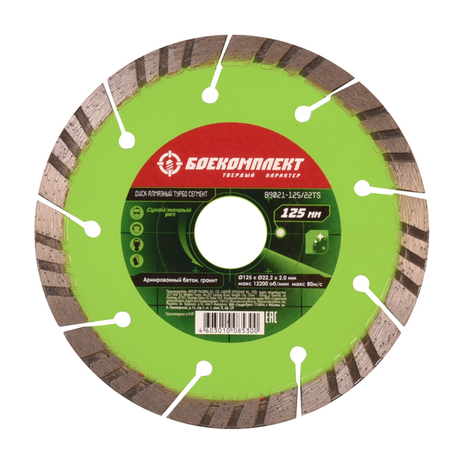 Алмазный диск 125x22,23 ТУРБО СЕГМЕНТ, сухой рез, БОЕКОМПЛЕКТ