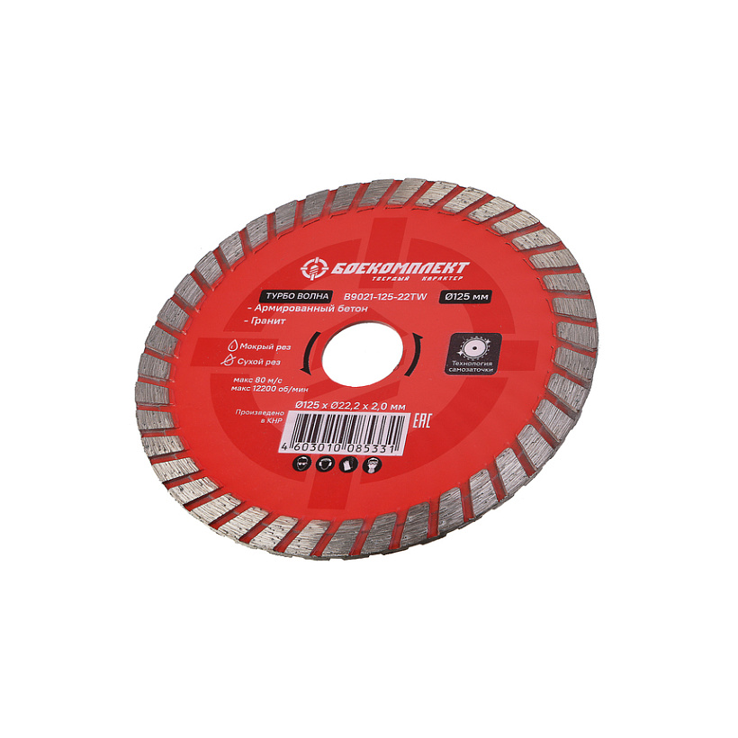 Алмазный диск 125x22,23 ТУРБО ВОЛНА, сухой рез, БОЕКОМПЛЕКТ