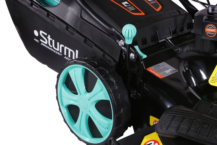 Мощный двигатель 5 лс обеспечит отличную производительность даже на высокой траве. Управление оборотами двигателя осуществляется с помощью удобного рычага на верхней рукоятке, позволяя настраивать нужную скорость движения.