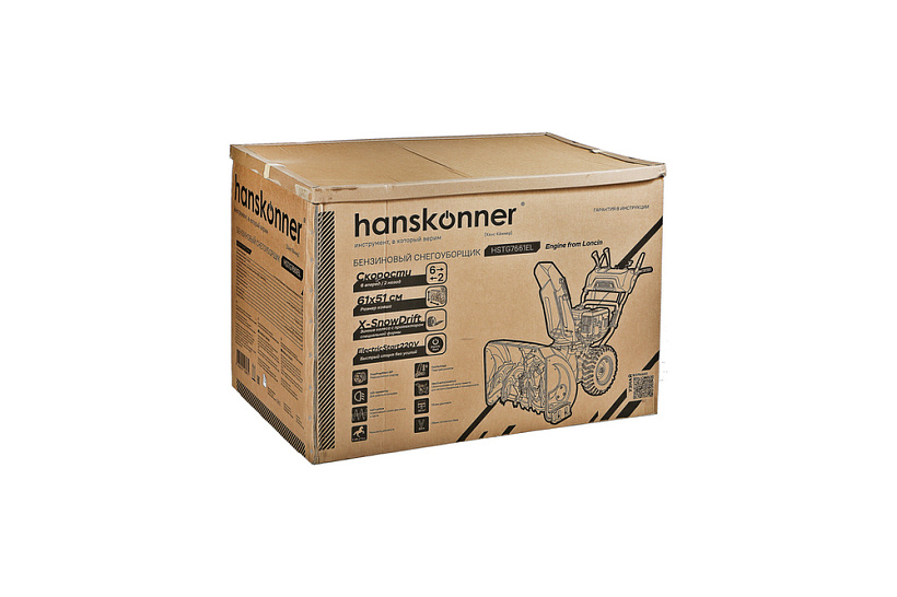 Hanskonner HSTG7661EL — мощный и производительный самоходный бензиновый снегоуборщик с максимальным уровнем оснащения. Предназначен для расчистки территорий средней и большой площади от снега различной плотности, как свежевыпавшего, так и слежавшегося.