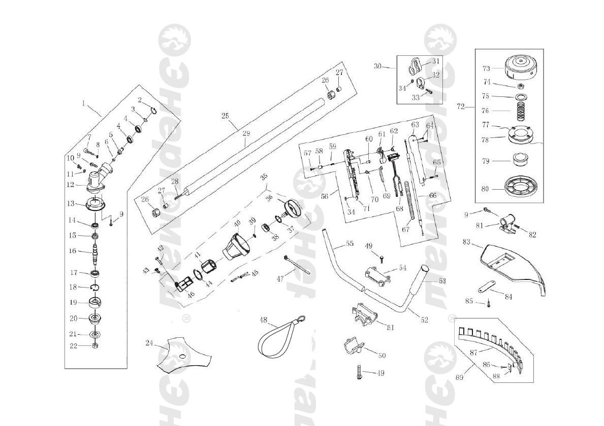 Особая конструкция редуктора с наклонным расположением к ведущему валу разработана специально для кусторезов и оптимизирована для работы в густых зарослях.