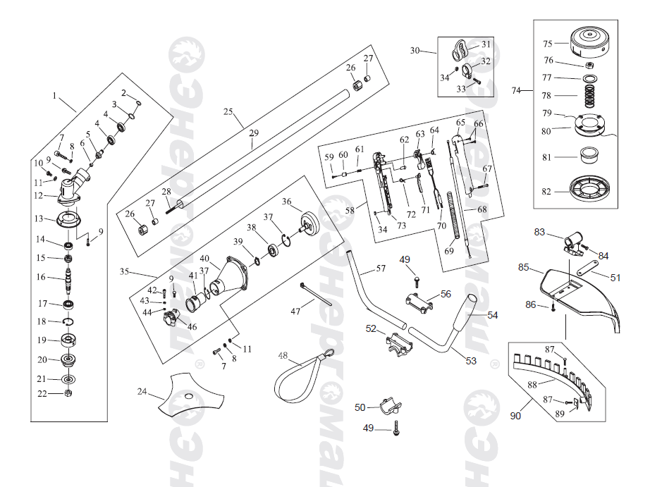 Особая конструкция редуктора с наклонным расположением к ведущему валу разработана специально для кусторезов и оптимизирована для работы в густых зарослях.