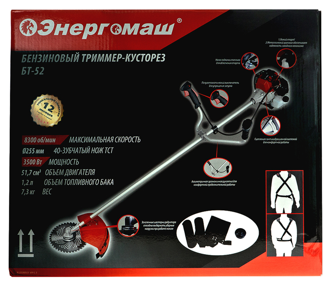 Высокопроизводительная модель с мощным двигателем с возможностью применения для прореживания кустарника и обрезания лишней растительности.