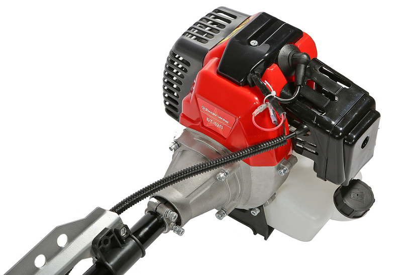 Особая конструкция редуктора с наклонным расположением к ведущему валу разработана специально для кусторезов и оптимизирована для работы в густых зарослях.