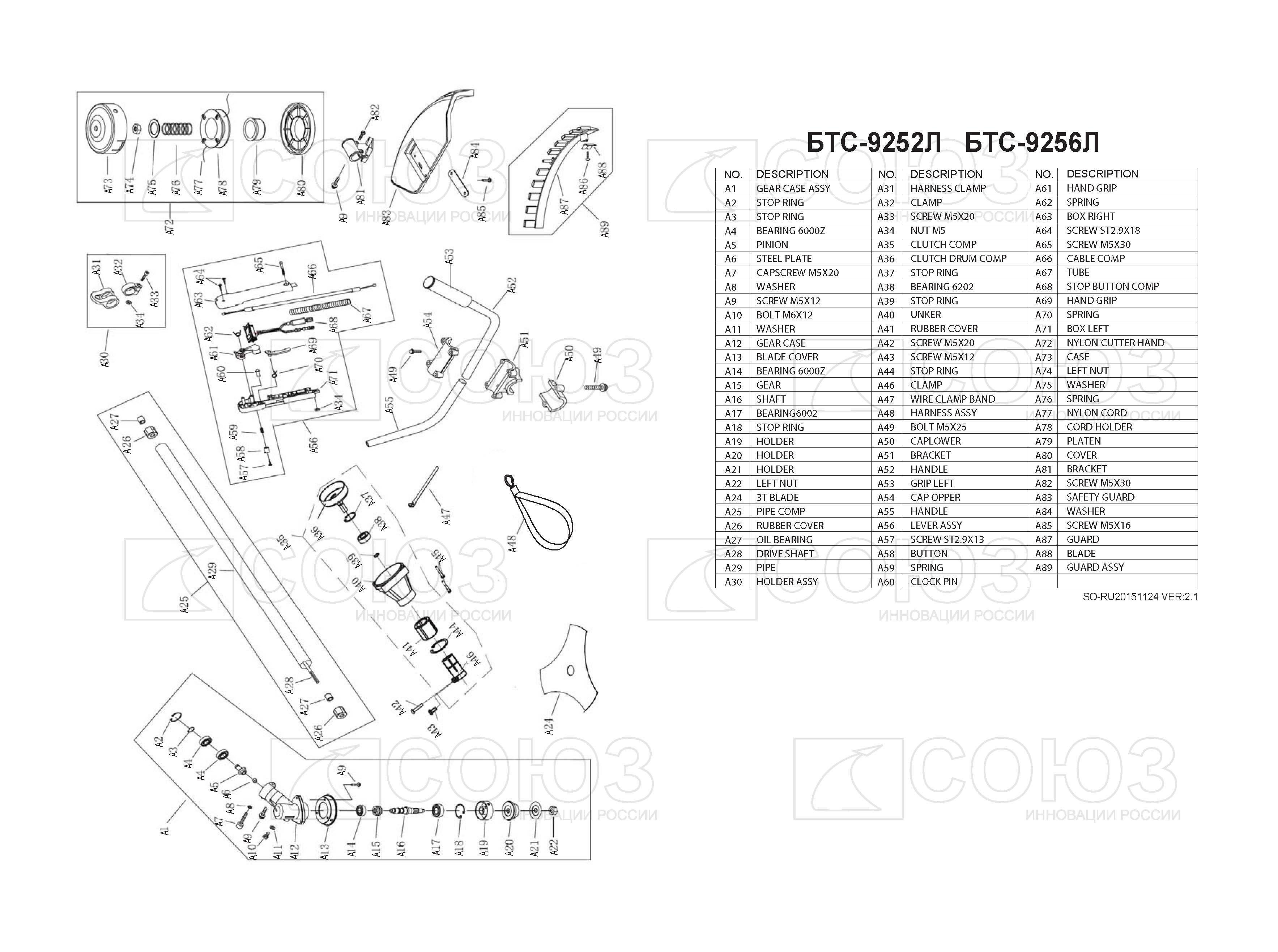 СОЮЗ БТС-9256Л – универсальная производительная бензиновая коса бытового класса для обработки приусадебных территорий больших площадей (более 1000 кв. метров) Инструмент рассчитан на работу в условиях повышенных длительных нагрузок и оснащен, одним из наиболее мощных в классе, бензиновым двухтактным двигателем рабочим объемом 56 куб см (мощность 4 кВт), вкупе с усиленным стальным валом и высокопрочным редуктором позволяющим уверенное использование бензокосы с разными типами режущей оснастки, включая металлические ножи и фрезы, а также культиваторные насадки. Благодаря длинной неразборной штанге и Т-образной широкой рукояти велосипедного типа бензокоса удобна при продолжительной работе.