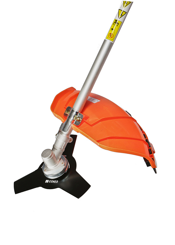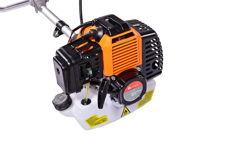 Предусмотрена возможность продольной регулировки рукояти, а также регулировка проушины крепления ремня, что позволяет настроить бензокосу под конкретного пользователя. Легкость запуска инструмента гарантируют механизм облегченного старта со специальной дополнительной пружиной и праймер. Модель проста в обслуживании и эксплуатации и не вызовет затруднений даже у пользователей не обладающим достаточными навыками работы с бензокосами. Инструмент имеет расширенную базовую комплектацию, куда входят ременной подвес (через одно плечо), косильная головка для лески и трехзубый нож.