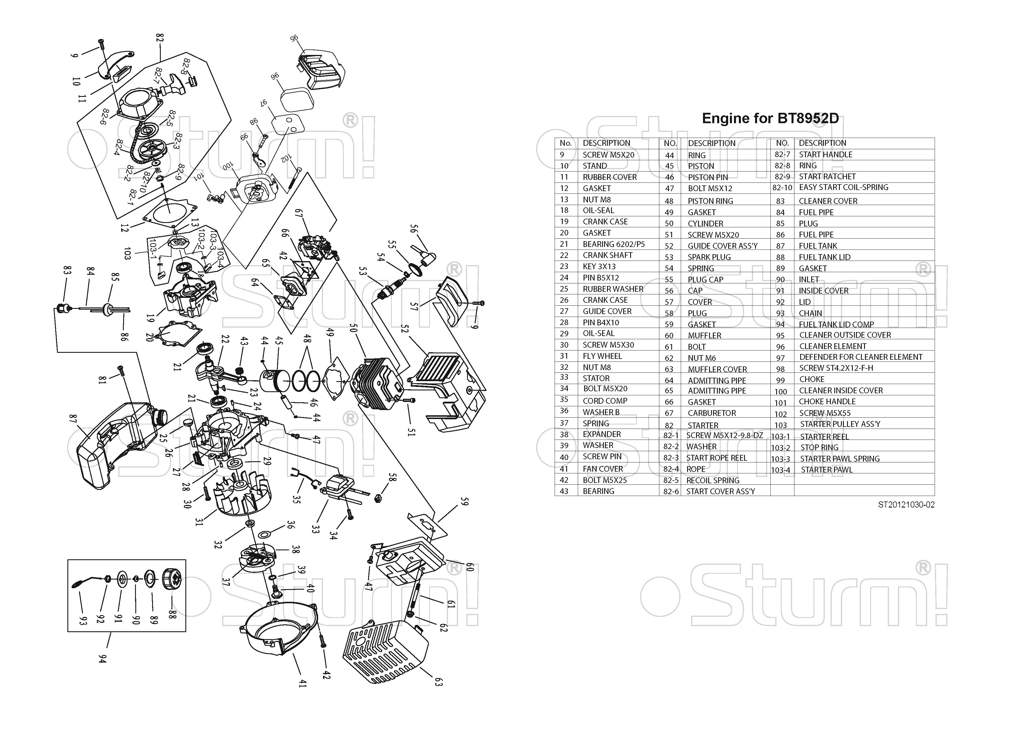 Общие рекомендации: для бесперебойной работы и долгого срока службы инструмента рекомендуется использовать неэтилированный бензин с октановым числом 92 единицы, а также специальное масло для двухтактных двигателей воздушного охлаждения Sturm OM0201B.