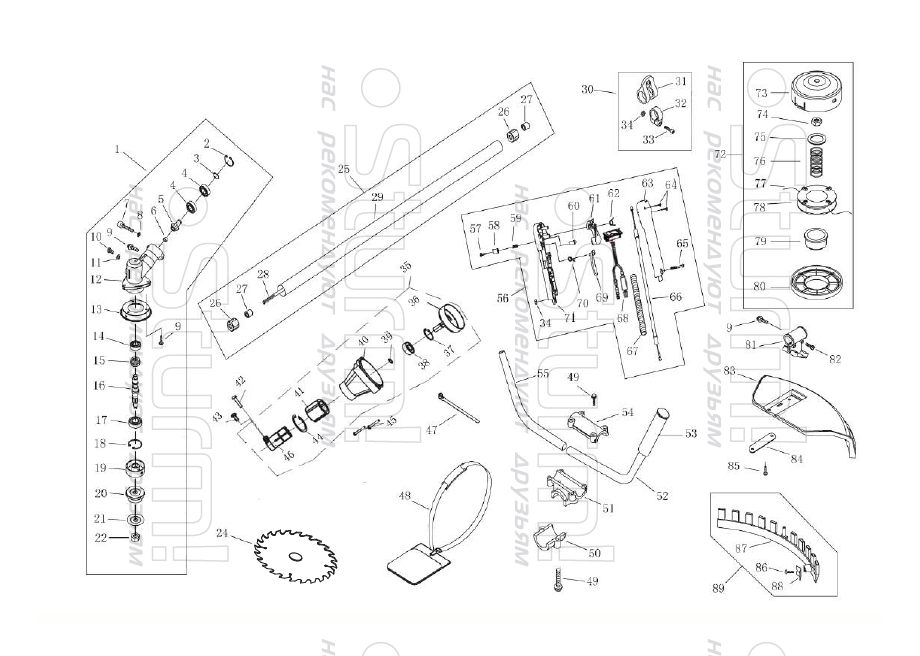 Особая конструкция редуктора с наклонным расположением к ведущему валу разработана специально для кусторезов и оптимизирована для работы в густых зарослях.
