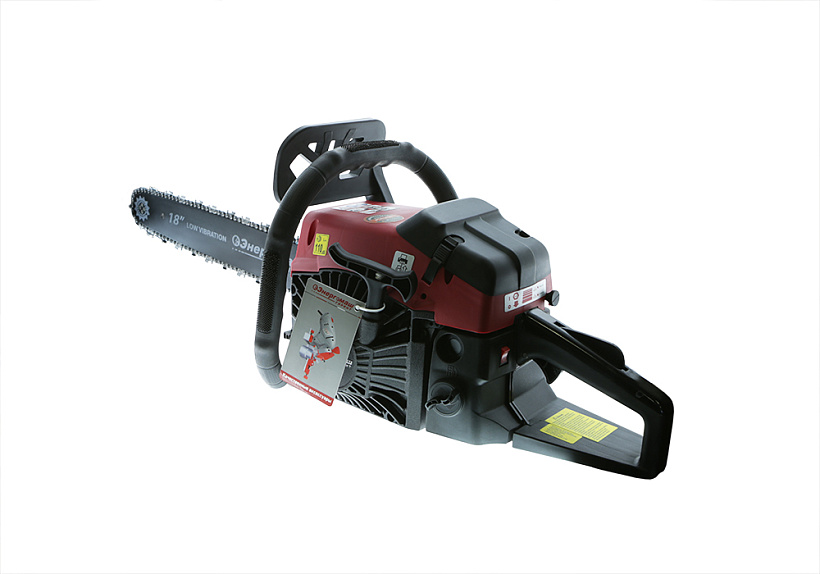В основе работы двигателя ДВС лежит преобразование энергии сгорания топлива в механическую энергию. Легкий старт обеспечивает бесперебойный запуск без особых усилий. Также предусмотрен праймер подкачки топлива. Благодаря ему можно завести не прогретый двигатель при любых условиях. Чтобы инструмент всегда был готов к работе, в его конструкции предусмотрен возвратный механизм стартера – он в автоматическом режиме приводит бензопилу в пусковое положение для быстрого запуска. При переводе инструмента в холостой режим масляный насос (регулируемый) приостанавливает смазку и позволяет настроить подачу масла. Усиленный картер двигателя и кованый коленчатый вал обладают высокой прочностью и долговечностью. Объем масляного бака составляет 0,26 л.
