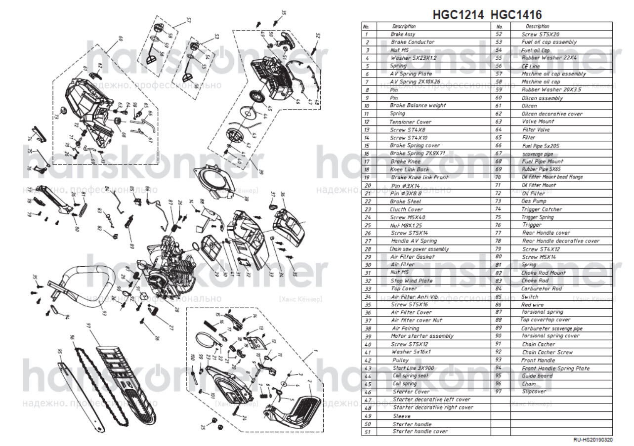 Бензопила Hanskonner HGC1416. Маневренная, износостойкая модель с быстрым разгоном отличается удобством в эксплуатации и подходит для выполнения работ в стесненных условиях.