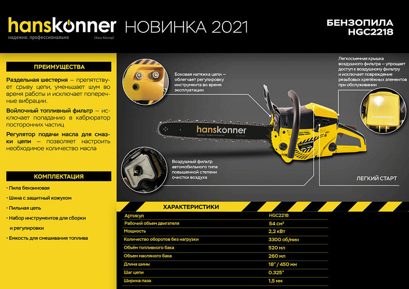 Бензопила Hanskonner HGC2218.