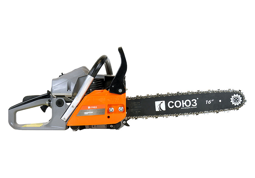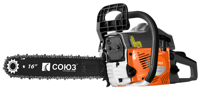 СОЮЗ ПТС-99371 — универсальная бензиновая пила для домашнего применения. Предназначена для работ по распилу древесины различной сложности и объема: от подрезания веток на садовом участке и вплоть до сезонной заготовки дров. Инструмент оснащен экономичным двухтактным двигателем рабочим объемом 38 см3, мощностью 2,0 кВт и 405 мм пильной гарнитурой, достаточной для выполнения большинства бытовых задач. Благодаря нейтральному центру тяжести, модель отлично сбалансирована, хорошо лежит в руках и имеет отличную маневренность, позволяя с легкостью выполнять распилы под разными углами. Относительно небольшая масса и многоточечная антивибрационная система, значительно снижающая передаваемую на руки вибрацию, способствуют меньшей усталости при длительных работах. Инструмент максимально прост в использовании и не вызовет затруднений у пользователей, не обладающими уверенными навыками работы с бензиновыми пилами. Этому способствует ряд современных опций: легкость запуска гарантирует система облегченного старта со специальной дополнительной пружиной, а наличие праймера позволяет уверенный пуск инструмента в условиях низких температур и после длительных перерывов в эксплуатации. За безопасность использования отвечает механический тормоз цепи, защищая пользователя в случае обратного удара. Возможность безынструментального доступа к карбюратору, фильтрующему элементу и свече зажигания обеспечивает удобство обслуживания пилы даже в самых неприспособленных условиях.