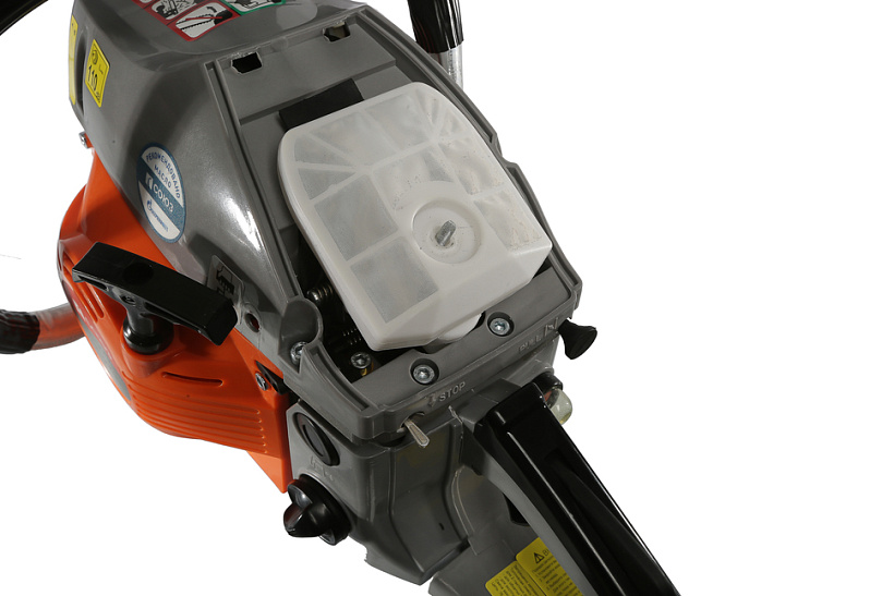 Модель проста в эксплуатации и не вызовет затруднений у пользователей, не обладающих достаточными навыками работы с бензопилами. Легкость запуска гарантируют система облегченного старта со специальной дополнительной пружиной и праймер, позволяющий уверенный пуск инструмента в условиях низких температур, а также после длительных перерывов в эксплуатации. Возможность безынструментального доступа к карбюратору, фильтрующему элементу и свече зажигания обеспечивает удобство обслуживания пилы даже в самых неприспособленных условиях.