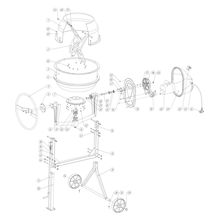 МОБИЛЬНОСТЬ. Благодаря транспортировочным колесам бетономешалку можно без труда перемещать в случае необходимости.