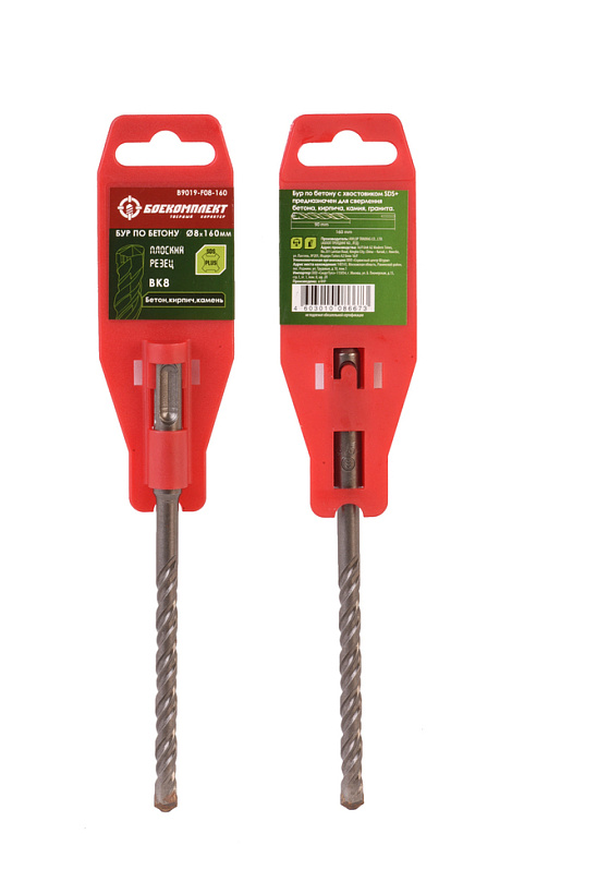 Бур SDS+ 08х160 плоский резец ВК8 спираль S4 БОЕКОМПЛЕКТ