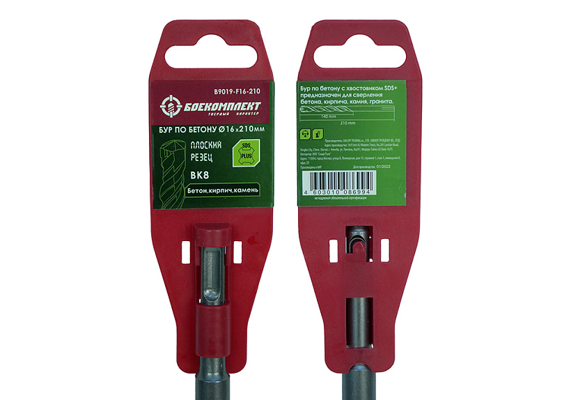 Бур SDS+ 16х210 плоский резец ВК8 спираль S4 БОЕКОМПЛЕКТ