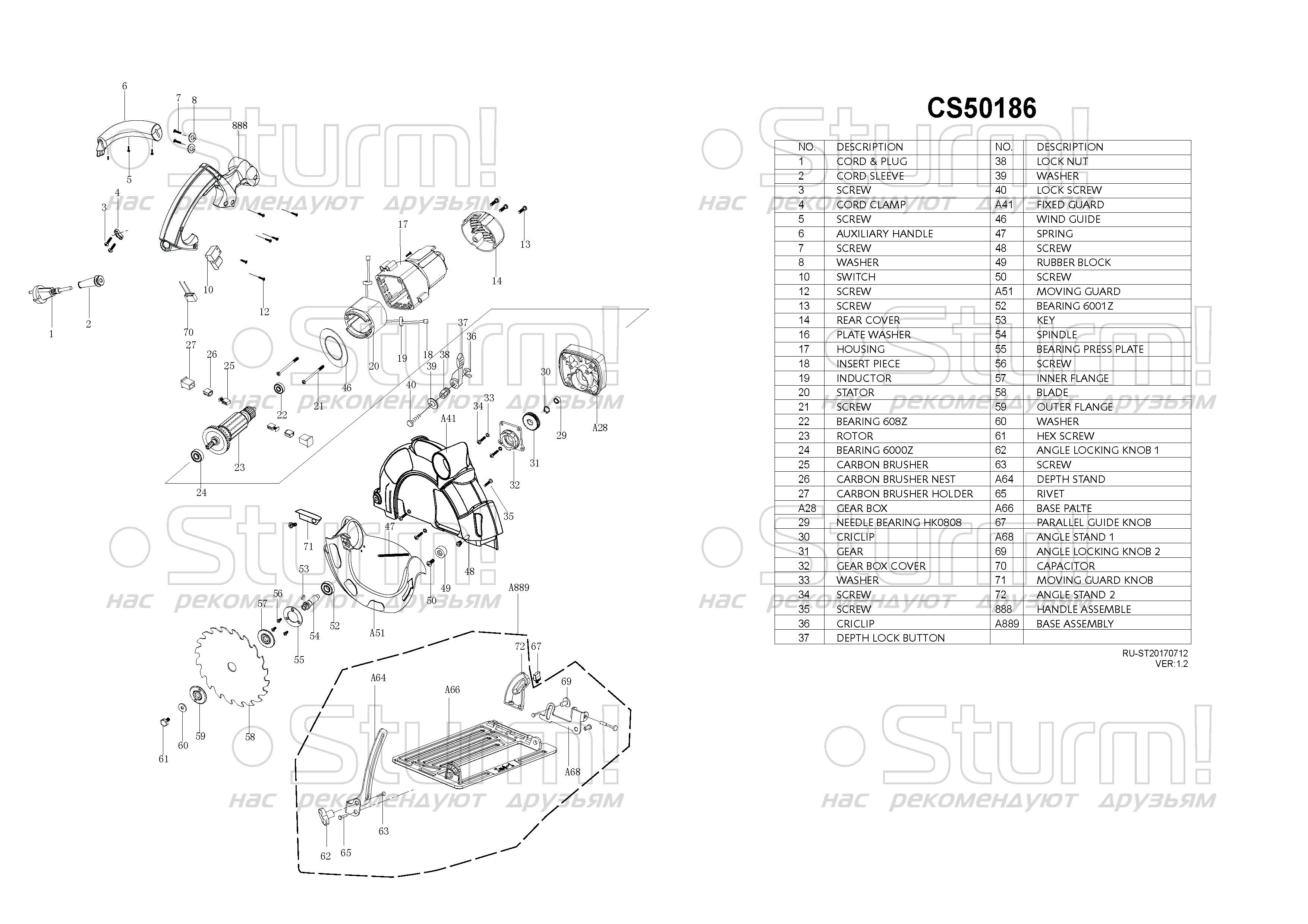 Безопасный сдвигающийся кожух и бесступенчатая регулировка глубины пропила с удобной шкалой и фиксацией без ключа облегчает работу оператора.