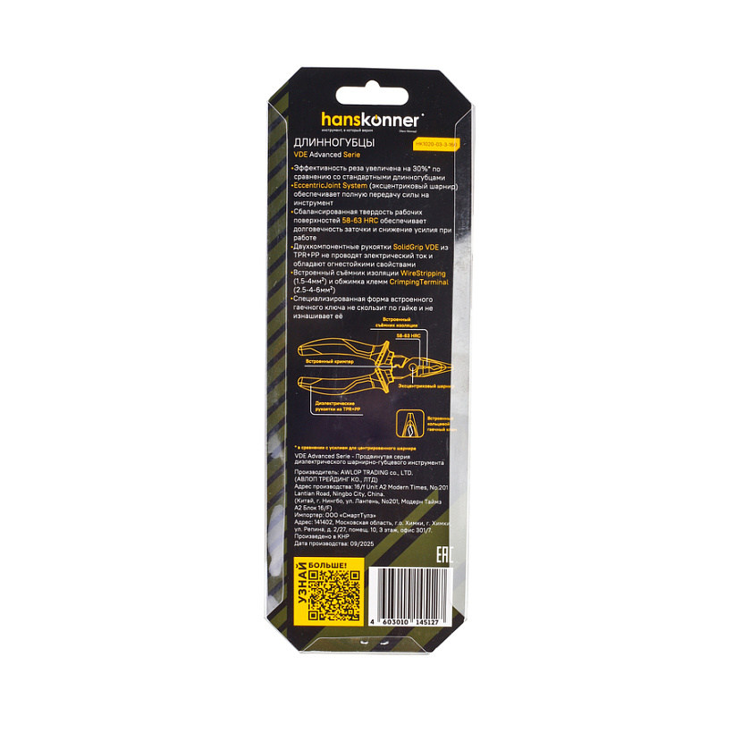 Длинногубцы 160мм, эксц. шарнир, стриппер, диэлектрические, hanskonner