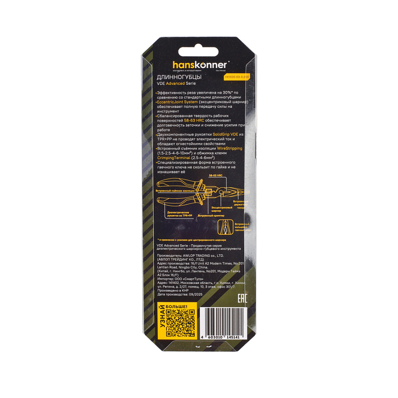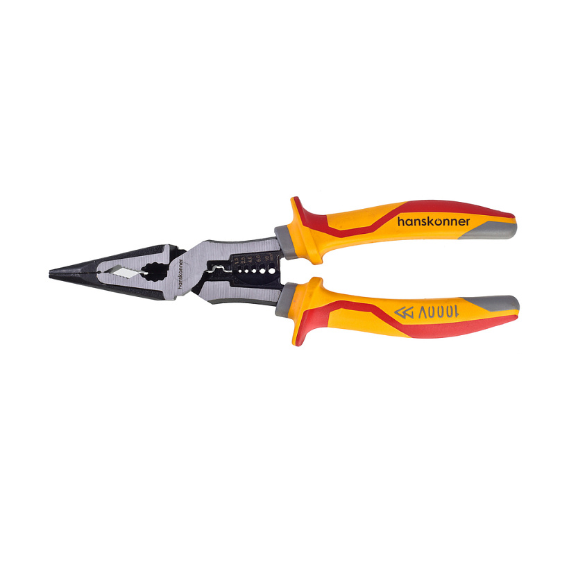 Длинногубцы 200мм, эксц. шарнир, стриппер, диэлектрические, hanskonner