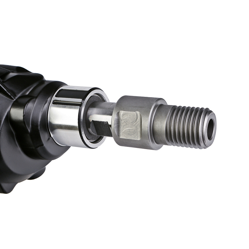 Применение в конструкции фирменных японских подшипников NSK повышенного ресурса способствует исправной и долговечной эксплуатации электроинструмента. Удобству в практическом обращении с дрелью содействует адаптер под алмазные коронки с хвостовиком 1 1/4", идущий в комплекте, фиксатор-липучка расположенный на кабеле и блокировка выключателя во включенном положении при длительных работах. Регулировка частоты вращения осуществляется усилием, приложенным к кнопке включения.