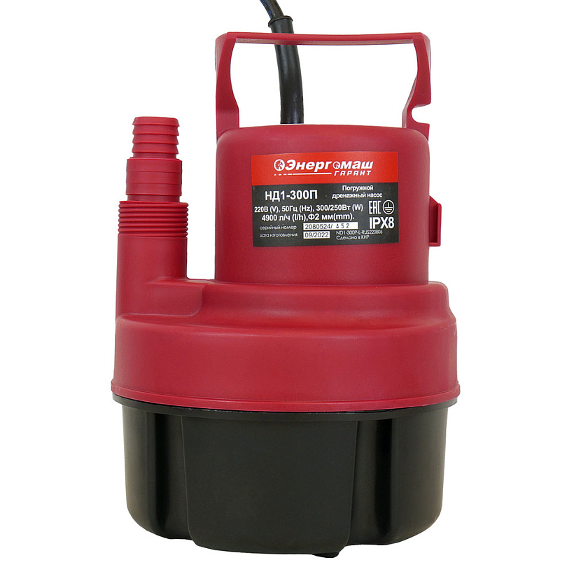 Насос погружной дренажный Энергомаш ГАРАНТ НД1-300П предназначен для откачивания относительно чистой воды из подвалов, погребов, дренажных приямков, колодцев и т.п. При этом минимальный уровень воды может быть всего 2 мм, что делает его уникальным и незаменимым для откачки воды из хозяйственных сооружений в период паводков – данный насос может наиболее полно убирать воду.