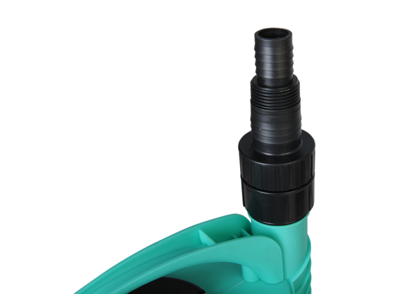Универсальный фитинг в комплекте позволит использовать с насосом шланги и трубы различных диаметров.
