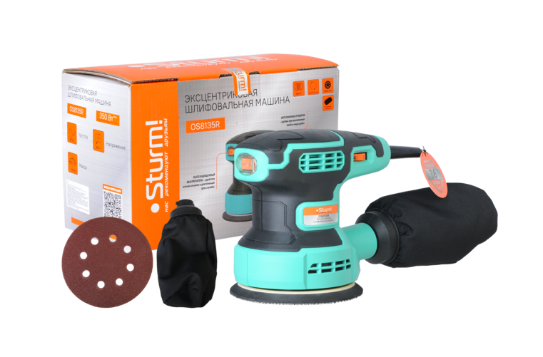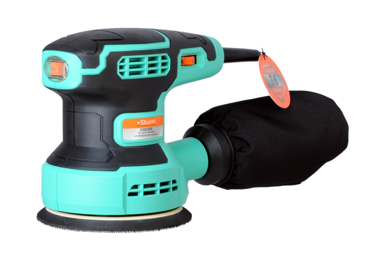 Sturm OS8135R – эксцентриковая шлифовальная машина для деликатного шлифования и полирования ровных и выпуклых поверхностей древесины, пластмассы, металла, шпатлевки и лака. Модель обладает выверенными массово-габаритными показателями и максимально приспособлена под управление одной рукой. Кроме того, компактные размеры шлифмашины позволяют уверенно использовать ее при работе с небольшими заготовками или в условиях с затрудненным доступом. Дополнительное удобство хвата достигается благодаря наличию обрезиненной накладки на корпусе. Инструмент оснащен 350 Вт электромотором, благодаря запасу мощности которого достигается равномерное поступательное движение шлифмашины по поверхности, исключая значительное снижение рабочих оборотов – это способствует эффективной обработке материалов с повышенными требованиями к качеству. Оптимизированная внутренняя аэродинамическая схема и лабиринтная защита от пыли сохраняют мотор от перегрева и продлевают его срок службы. На модели Sturm OS8135R предусмотрена электронная система регулировки частоты вращения в диапазоне от 6000 до 13000 об /мин, что позволяет подобрать оптимальную скорость вращения подошвы в зависимости от типа обрабатываемой поверхности. Выключатель с фиксацией пусковой клавиши обеспечивает удобство при непрерывной работе, а также имеет пылезащиту, что положительно влияет на его ресурс. За счет применения системы крепления шлифовального круга с помощью велкро-липучки его замена становится проще и значительно быстрее. Конструкцией предусмотрена возможность установки пылесборника,