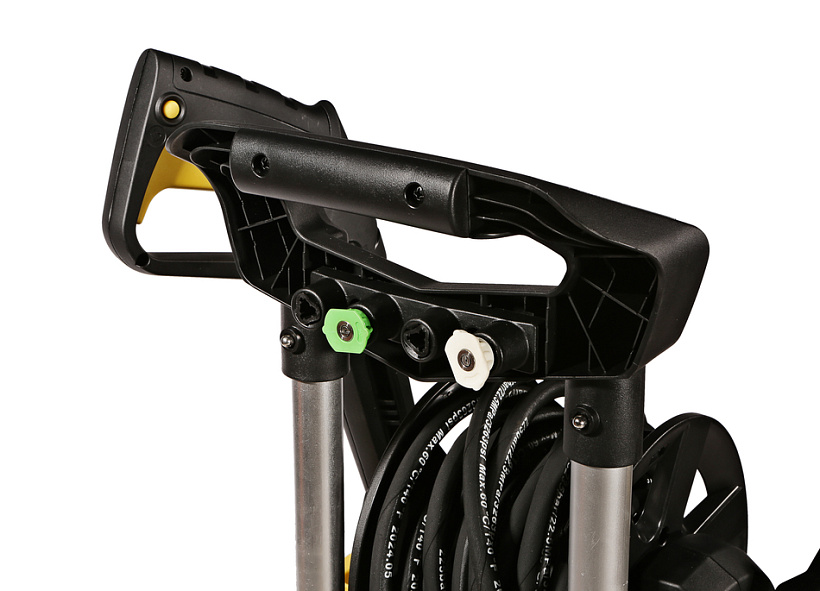 Для защиты шланга от нежелательных перегибов модель имеет штатную катушку для его намотки. 2 насадки с различной шириной струи и роторная фреза "TurboNozzle" позволяют выбрать оптимальный режим работы.
