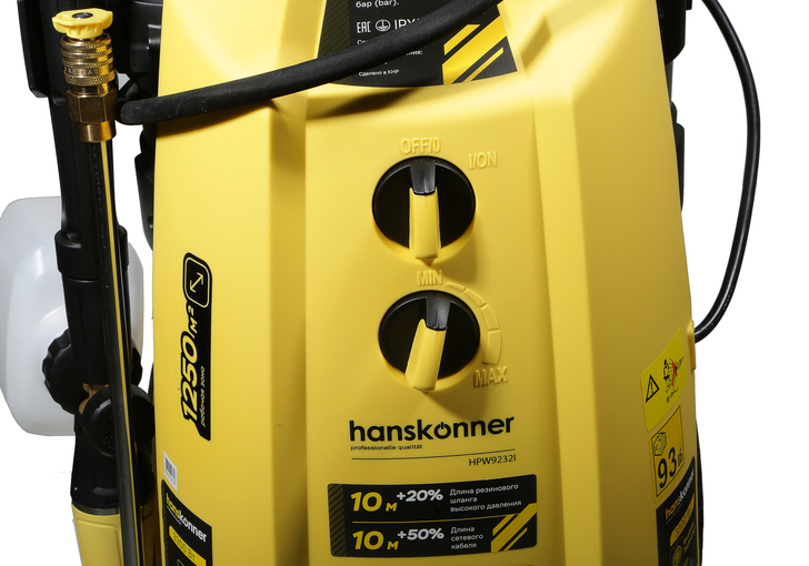 Hanskonner HPW9232I – универсальная мойка высокого давления линейки Professional – одна из самых мощных моек в классе. Отличается высокой надежностью и ресурсом. Благодаря грамотной эргономике удобна в эксплуатации. Большая производительность (номинальная производительность – 552 л/мин) и высокий показатель рабочего давления (рабочее давление – 150 бар) позволяют успешно использовать модель при очистке наиболее стойких загрязнений с различных поверхностей. Идеально подходит для очистки транспортных средств (грузовых/легковых автомобилей, с/х техники, яхт, лодок), фасадов зданий, садовых дорожек, плитки, бассейнов, сильно загрязненных поверхностей из камня, дерева, металла и пластика.