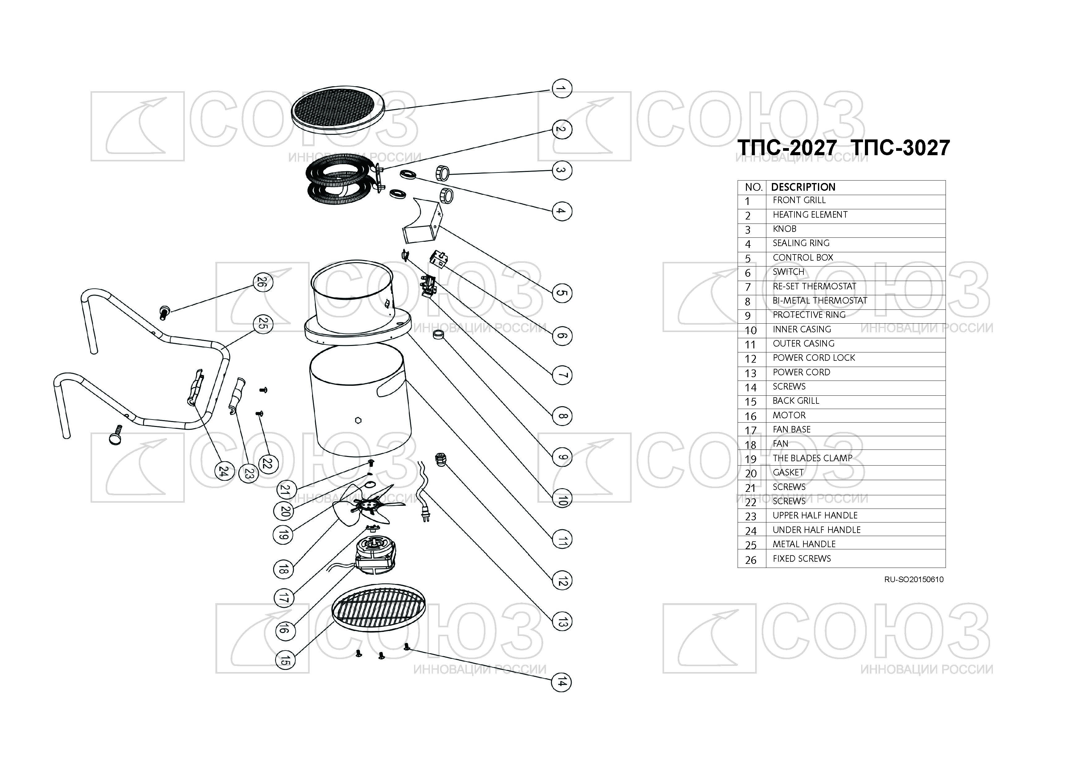 СОЮЗ ТПС-2027 — мощный мобильный обогреватель для временного или постоянного обогрева жилых, производственных и вспомогательных помещений площадью до 30 м2. Модель выполнена в прочном металлическом корпусе, устойчивым к возможным механическим повреждениям и имеет широкую опорную подошву, предотвращающую случайное опрокидывание. Небольшие габариты и вес модели способствуют удобству ее хранения и транспортировки. Обогреватель оснащен классическим нагревательным элементом спирального типа — он обеспечивает не только быстрый прогрев помещения, но и благодаря своей форме в виде спирали устойчив к попаданию внутрь устройства пыли и частиц абразива. Наличие мощного встроенного вентилятора позволяет обеспечить высокую производительность воздушного потока, проходящего через нагревательный элемент и ускорить циркуляцию нагретого воздуха в помещении. Управление обогревателем осуществляется посредством пары регуляторов, расположенных на верхней панели. С помощью первого регулятора пользователь выбирает один из двух предусмотренных режимов работы: вентиляция без нагрева/горячий обдув. Второй регулятор — управление настройкой термостата, задача которого — поддержание постоянной температуры в помещении. Безопасность устройства в процессе эксплуатации обеспечивает защита от перегрева.
