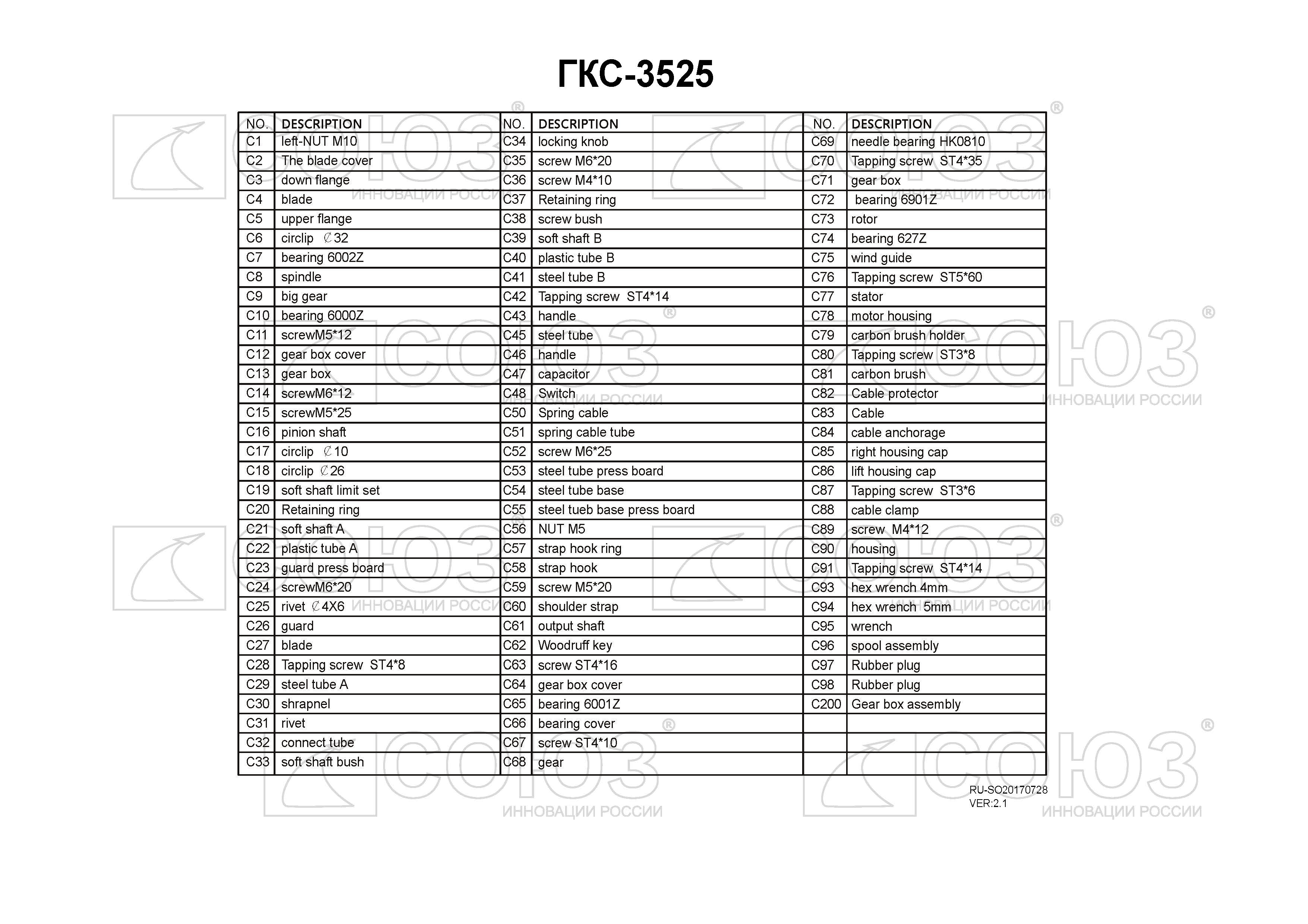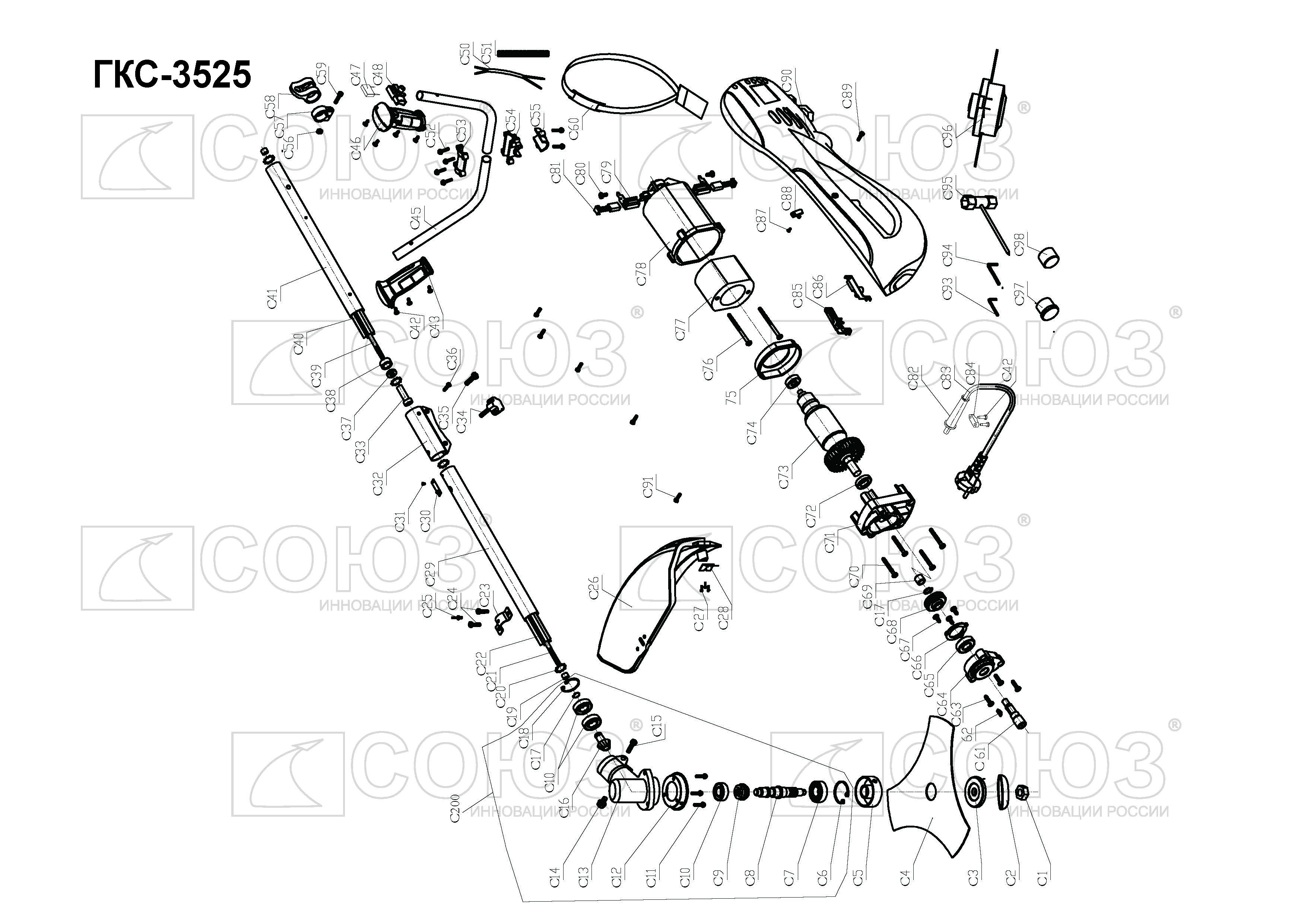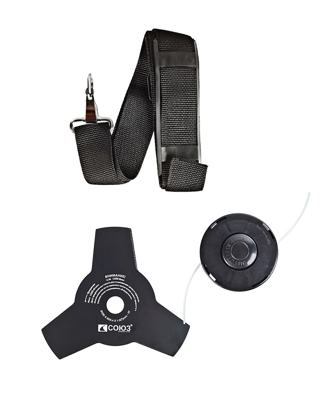 СОЮЗ ГКС-3525 — универсальная электрокоса для ухода за приусадебной территорией. Модель оснащена производительным 2,5 кВт мотором, развивающим максимальную частоту вращения режущей оснастки 6000 об/мин, что способствует эффективности и качеству работы. Высокие показатели по мощности, а также наличие в конструкции металлического приводного вала и прочного редуктора позволяют уверенно применять СОЮЗ ГКС-3525 в тандеме с различными типами оснастки, включая не только косильные катушки, но и металлические трехлопастные ножи для скашивания жесткой перезрелой травы и бурьяна. Компоновка с верхним расположением двигателя дает возможность использовать электрокосу для скашивания мокрой травы, так как исключается непосредственный контакт влаги с электрочастью. Кроме того, в сравнении с моделями с нижним расположением мотора, забор воздуха для охлаждения производится значительно выше зоны резания, что снижает вероятность попадания в электромотор различных абразивных частиц и пыли. Важной особенностью электрокосы является разборная двухсоставная штанга, обеспечивающая повышенное удобство при транспортировке и хранении — в случае необходимости пользователь может максимально быстро и легко разобрать штангу, тем самым, сокращая ее габаритную длину. Благодаря отличной эргономике и относительно небольшой массе инструмент очень удобен в использовании. Значительный комфорт для пользователя обеспечивает применение на модели СОЮЗ ГКС-3525 Т-образной рукояти «велосипедного типа»: она позволяет лучше контролировать электрокосу в процессе работы. Рукоять имеет возможность продольной регулировки. В штатную комплектацию инструмента входят катушка с леской, металлический трехлопастной нож и наплечный ремень.